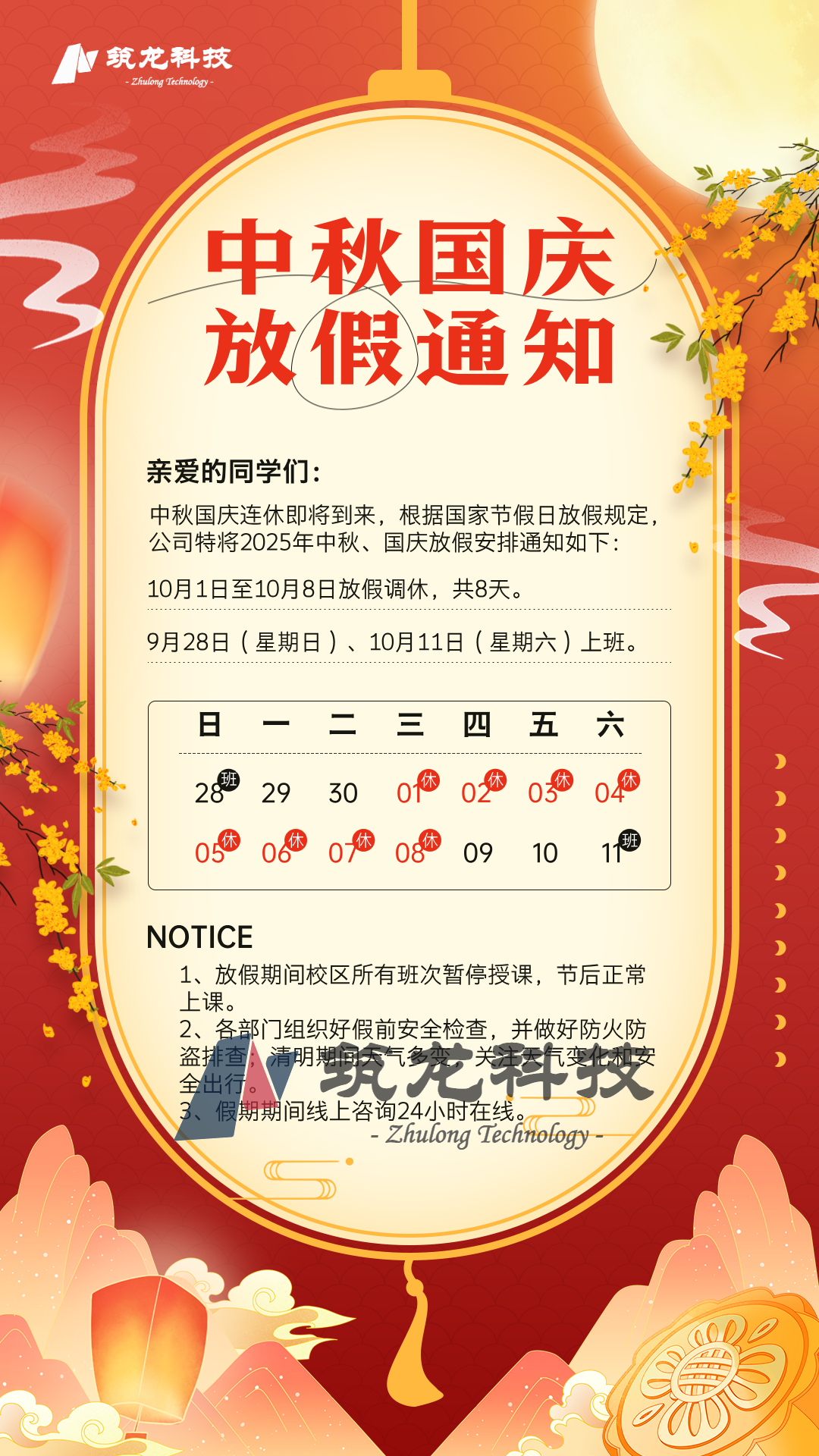 2025年新疆筑龙科技国庆中秋放假通知